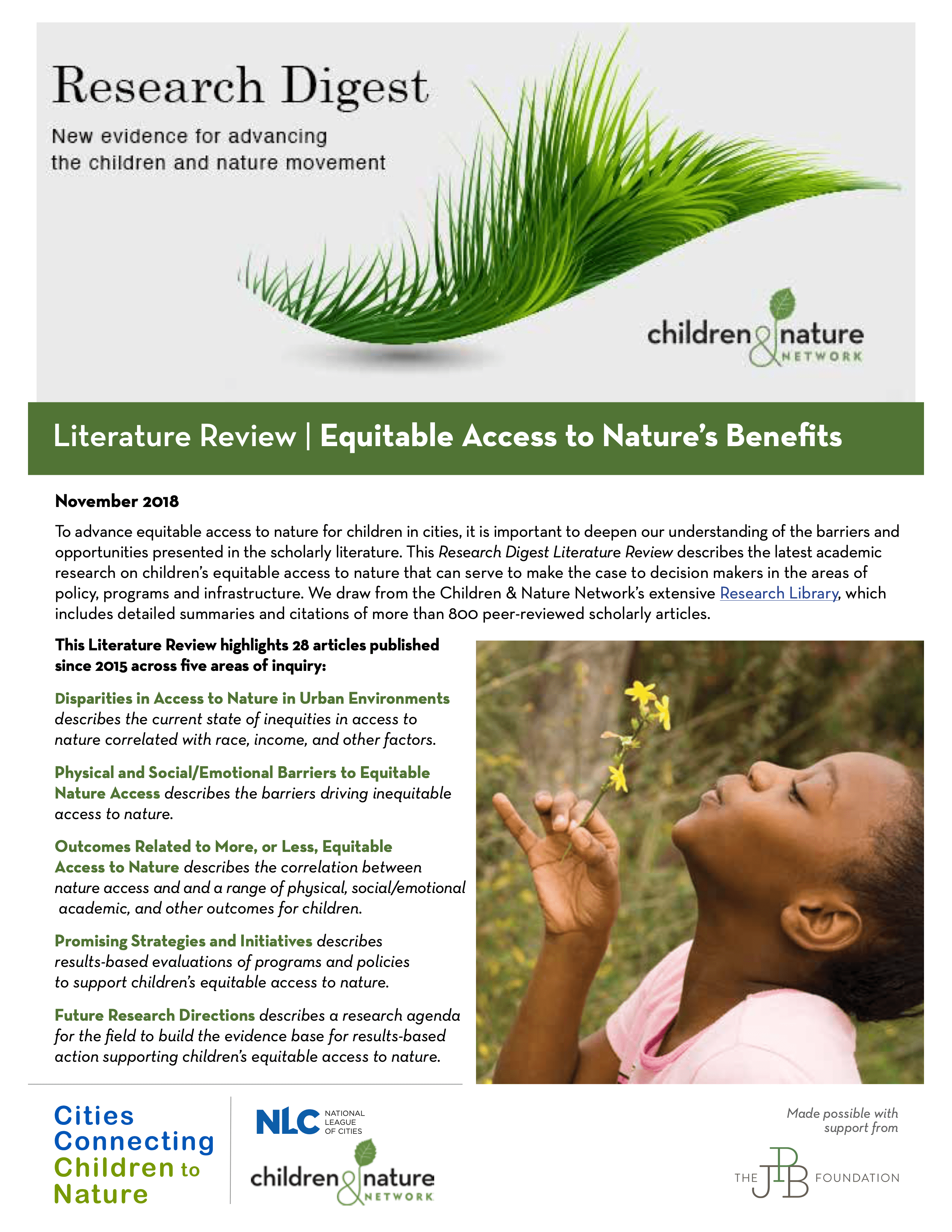 With the most extensive collection of research, news, and thought leadership for connecting children and families to nature, C&NN is leading the effort to develop evidence-based policies and practices that will help humans thrive in harmony with nature for decades to come.