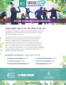 Young leaders ages 18-28: This series is for you! This summer, develop your leadership and advocacy skills to increase equitable access to the outdoors as a powerful pathway to healthy, just and sustainable communities.