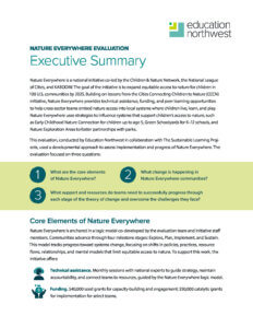 For ten years, Nature Everywhere Communities worked to expand equitable access to nature for children. To better understand how this work unfolds and what supports lasting impact, Education Northwest evaluated the initiative. This study explores how communities strengthened partnerships, aligned systems and built readiness for collaborative action, offering insights into the conditions that enable equitable, long-term change in children’s access to nature.
