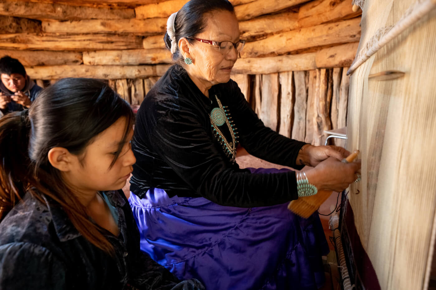 A Navajo grandmother teaches her granddaughter how to weave. iStock.com/grandriver