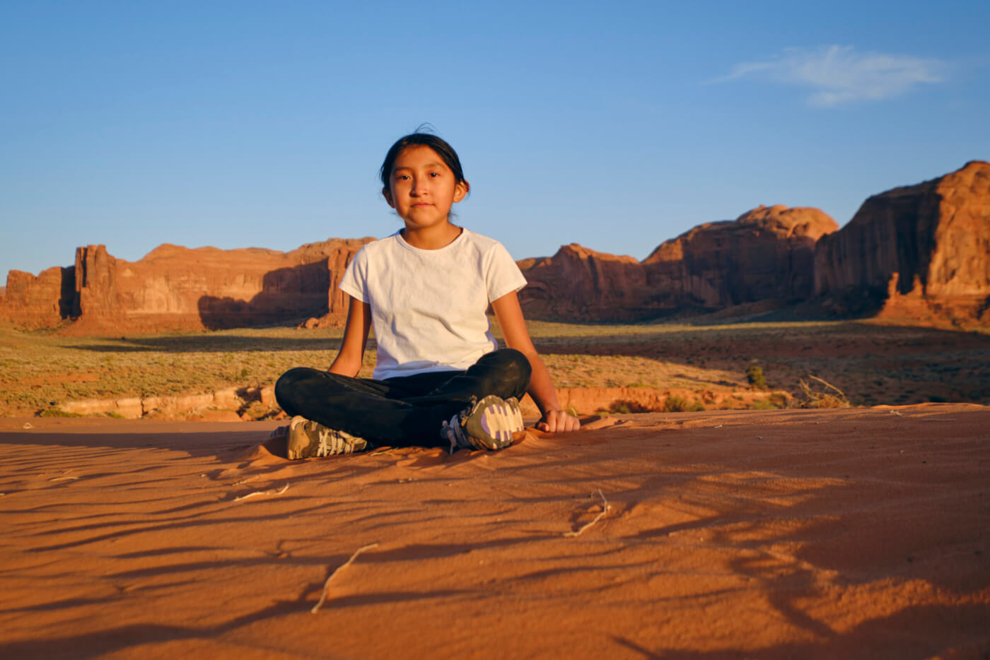 A young Navajo girl in Monument Valley, land of Hopi/Hopitutskwa, Navajo/Diné Bikéyah, Southern Paiute, Pueblos, and Ute peoples. iStock.com/RichLegg
