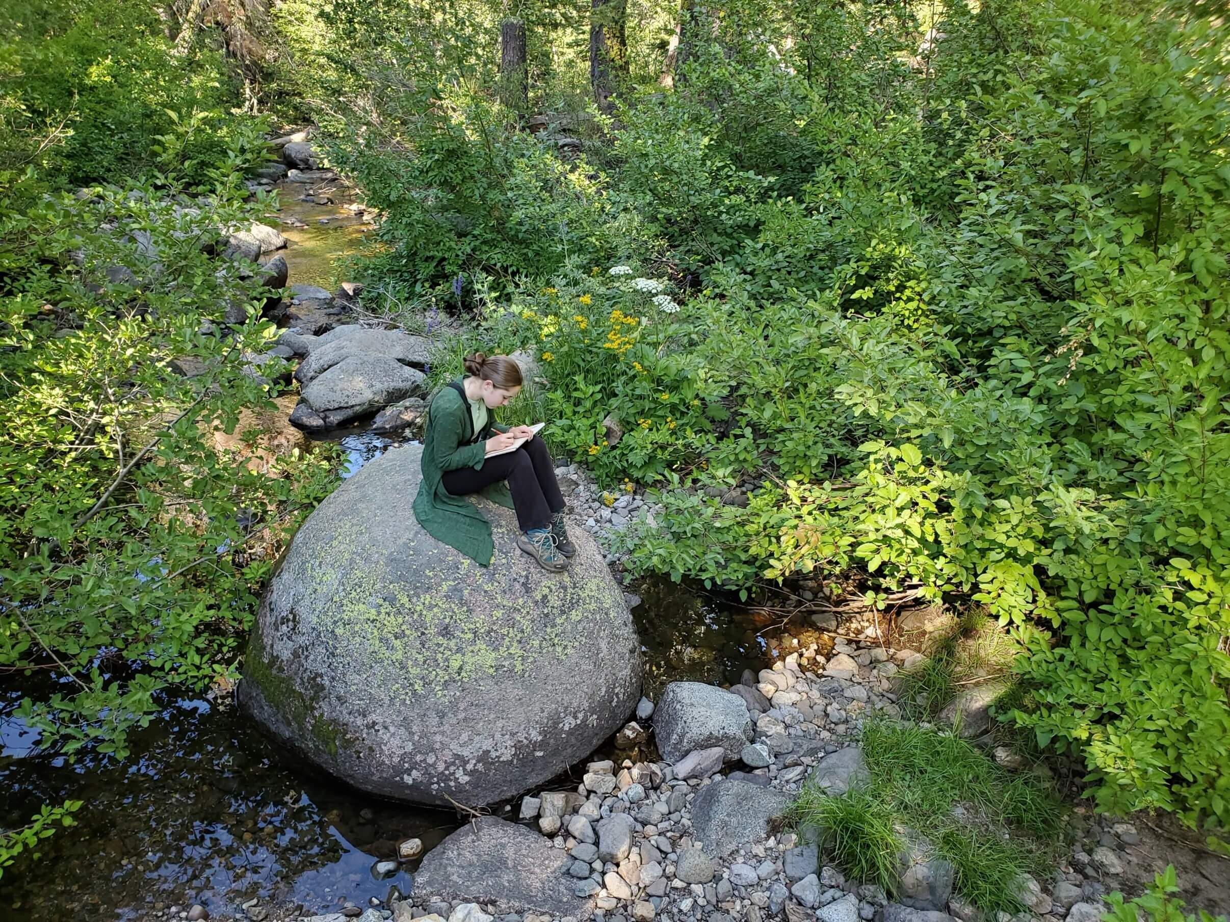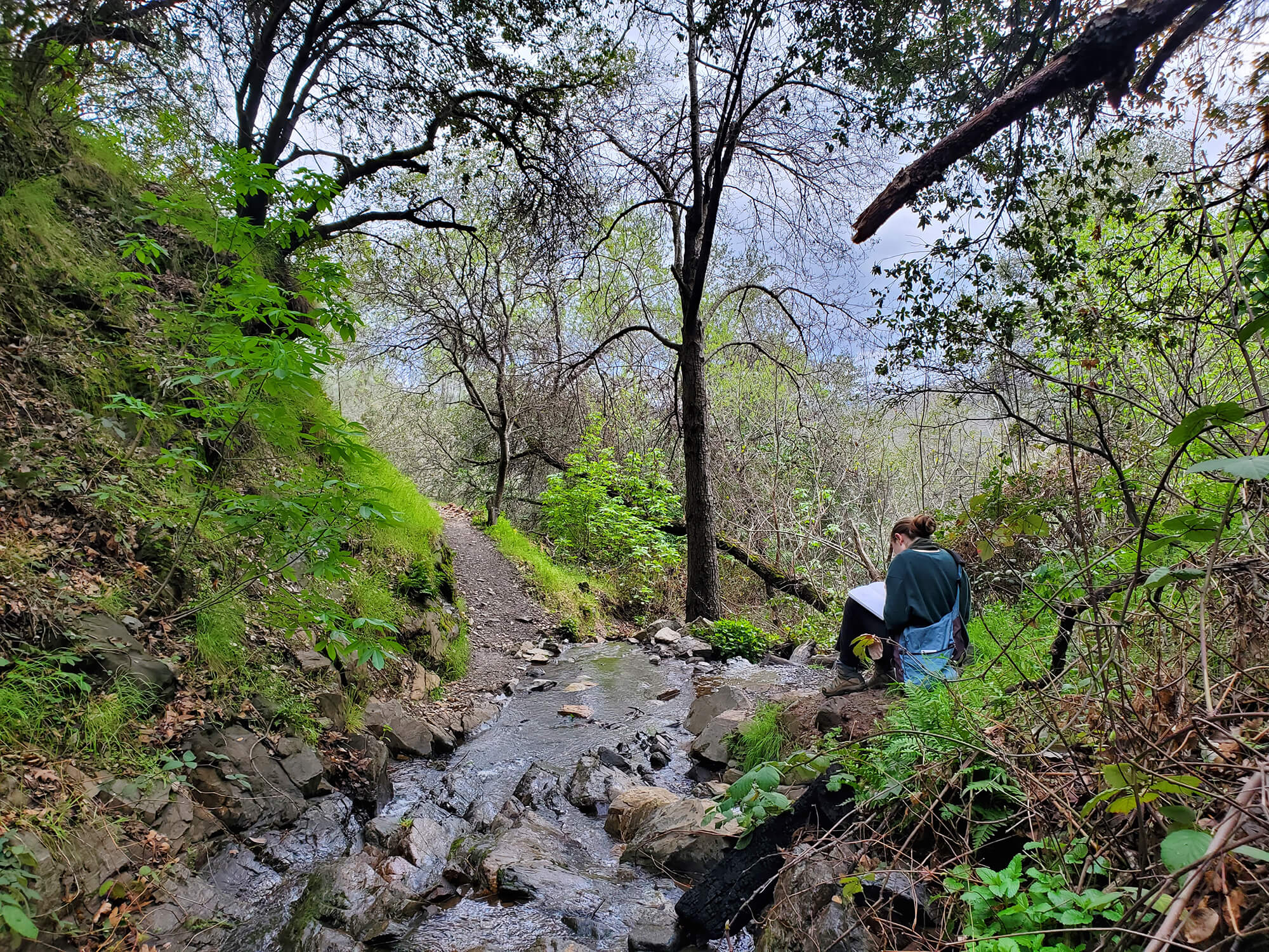 Fiona sketching wildflowers in the Sierra Nevada mountains.