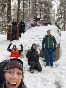 At a TAPS Healing in Nature retreat in the Rocky Mountains of Colorado, participants make the most of a blizzard. Photo courtesy of Jason Stout.