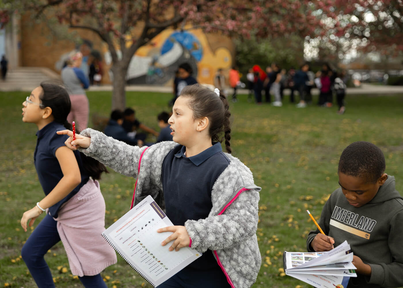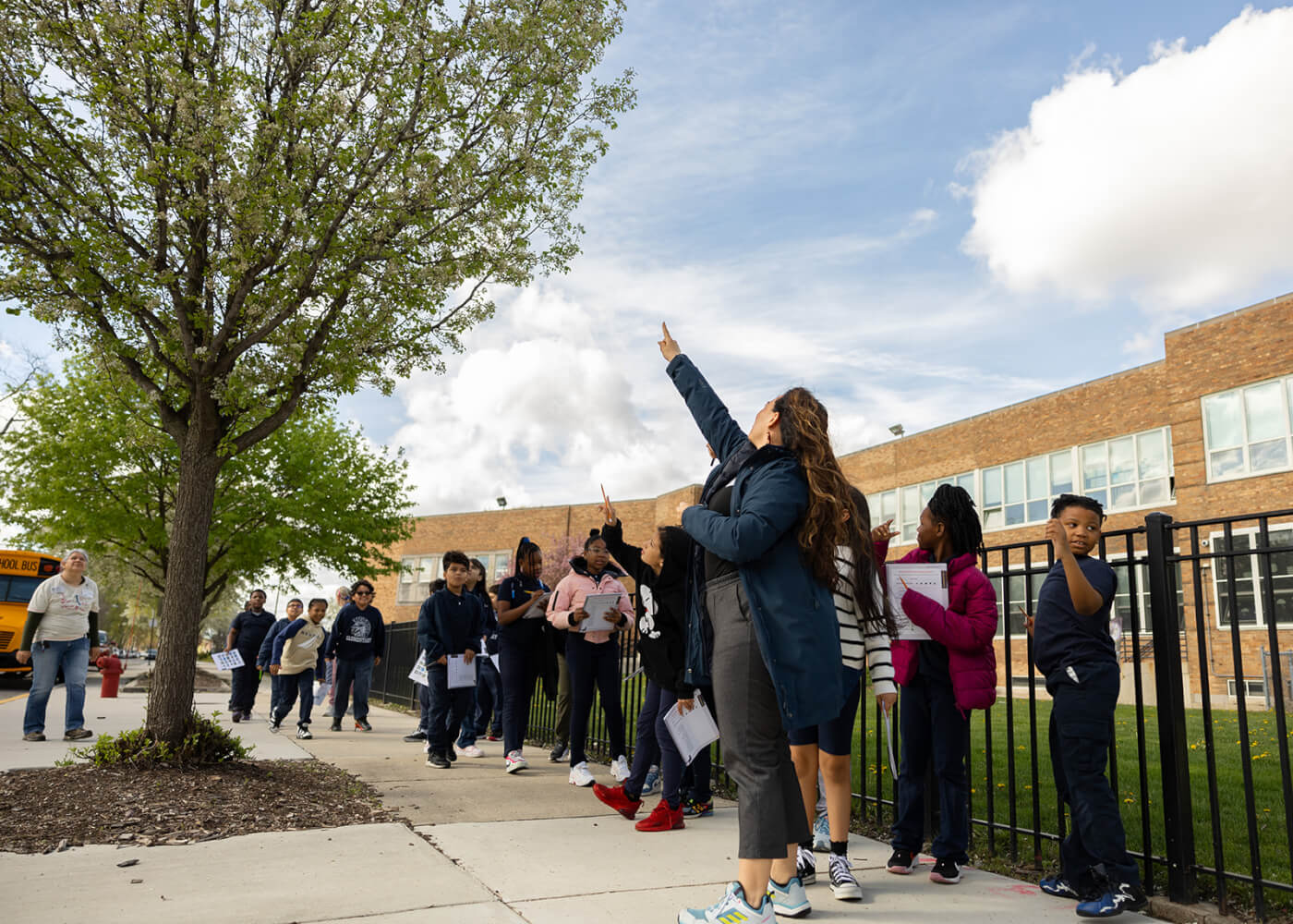 Since 2013, Birds in My Neighborhood® has introduced more than 12,000 elementary students in over 300 Chicago public schools to the joys of bird-watching. The program focuses primarily on schools on the south and west sides of the city. According to the Climate and Economic Justice Tool created by President Biden’s Justice40 Initiative, many of these communities are heavily burdened by environmental challenges, such as air pollution, toxic water and wastewater, and the localized effects of climate change. “Most of Openlands’ work is in those areas, and we’re very intentional about bringing Birds in My Neighborhood to these schools,” says Fong, “because we know that those children are impacted by lack of access to the lakefront, to green spaces and, really, just to nature.”