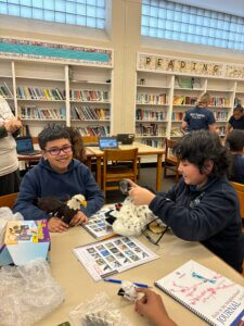 Students at Hearst Elementary School investigate feather and fowl during a Birds in My Neighborhood classroom visit. Photo by Jessica Fong, courtesy of Openlands.