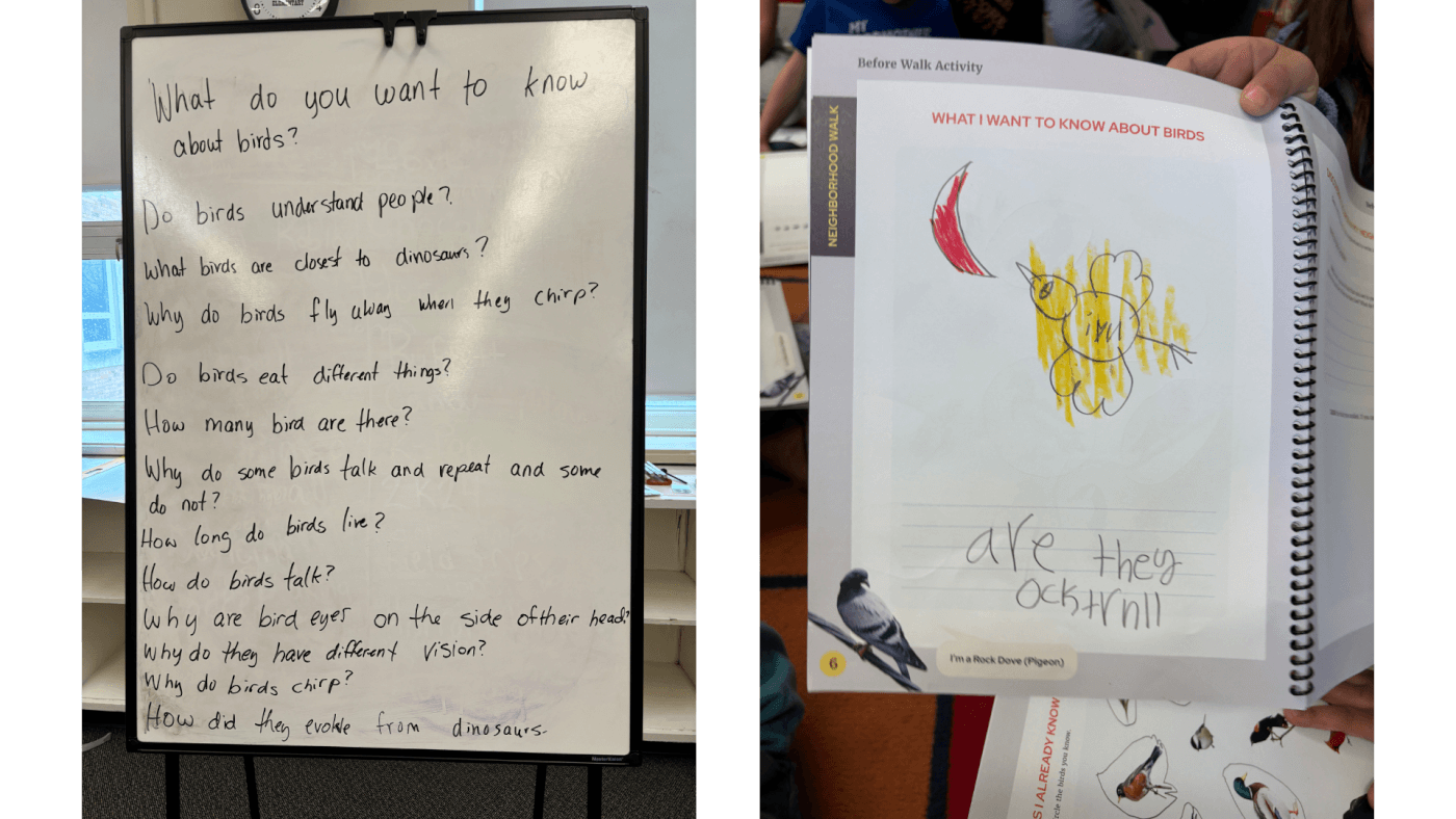 During classroom visits with volunteers, students share what they know and want to know about birds. Each student then receives a birding notebook, so they can keep track of their birding experiences. Photo by Jessica Fong, courtesy of Openlands.