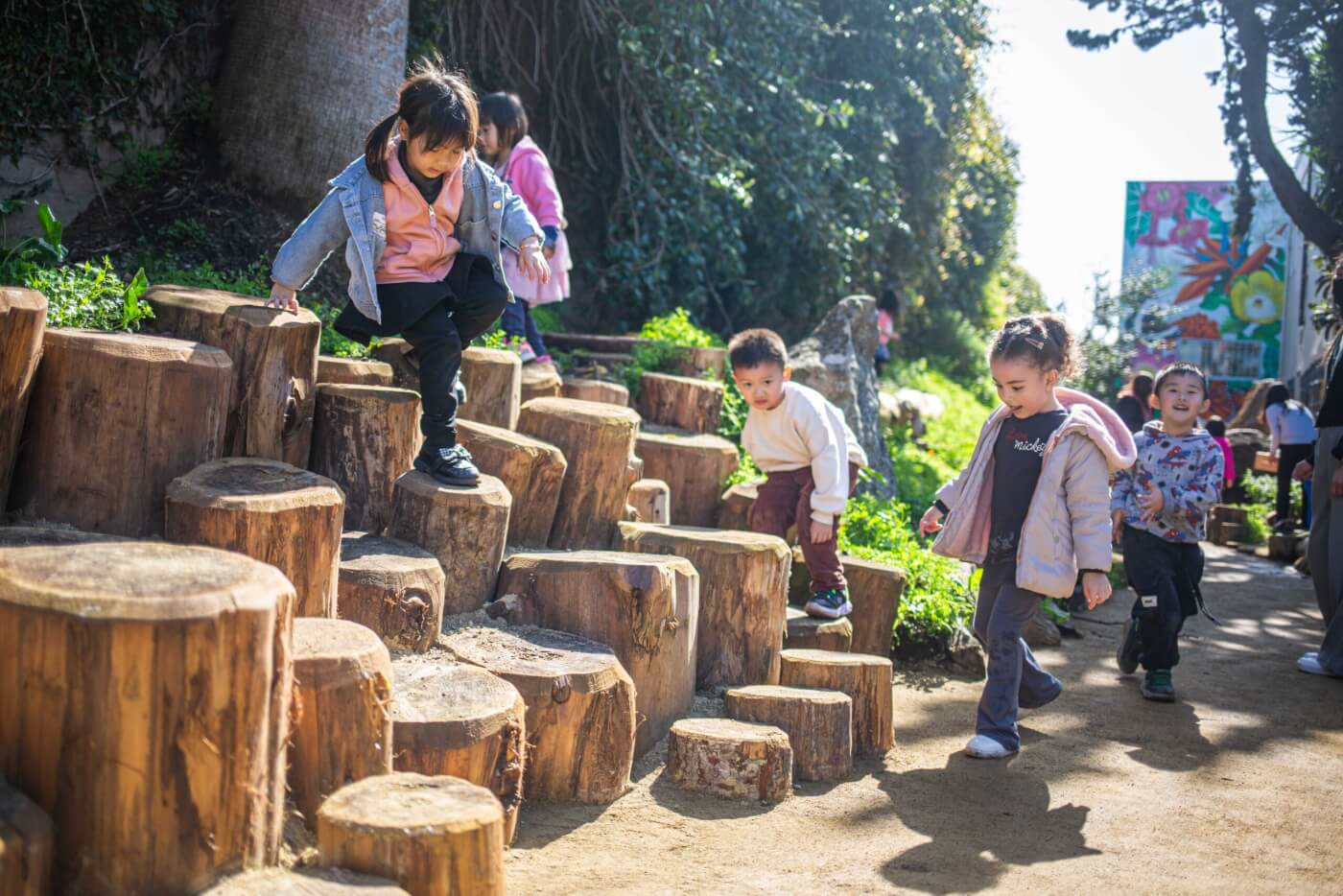 Logs from Golden Gate Park and the Presidio were repurposed for nature play at Friends of St. Francis Childcare Center in San Francisco. Photo: San Francisco Children & Nature