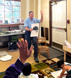 Ranger David, an education coordinator from San Antonio Parks and Recreation Natural Areas, talks to children and parents about Texas trees and wildlife at a local library. Photo courtesy of San Antonio Public Library.