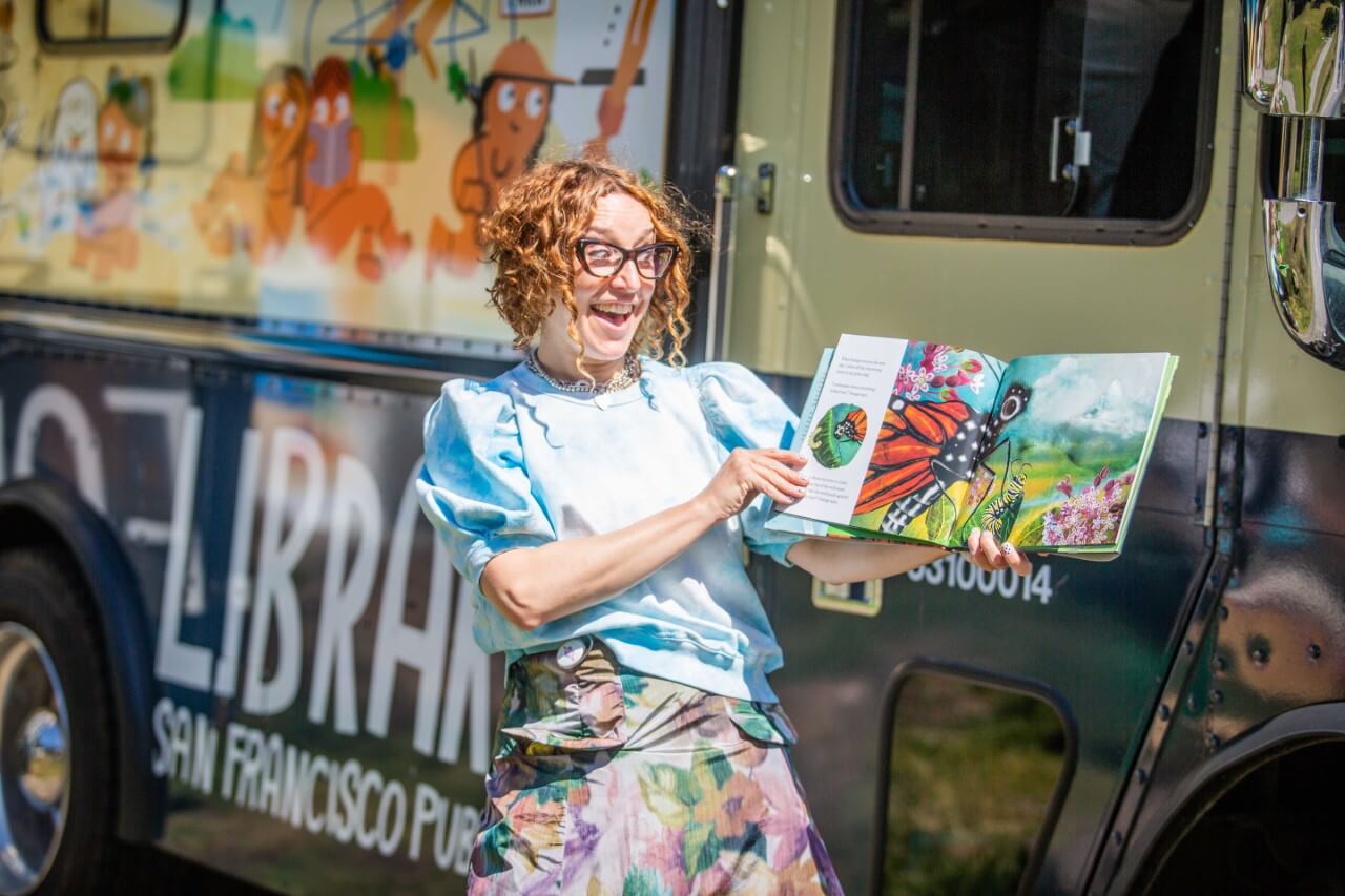 The San Francisco Public Library YouthMobile brings a high-energy storytime to local parks. Photo courtesy of SF Children & Nature.