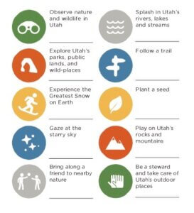 Utah law says children should have the opportunity to access these ten outdoor activities. Graphic courtesy of Utah Division of Outdoor Recreation.