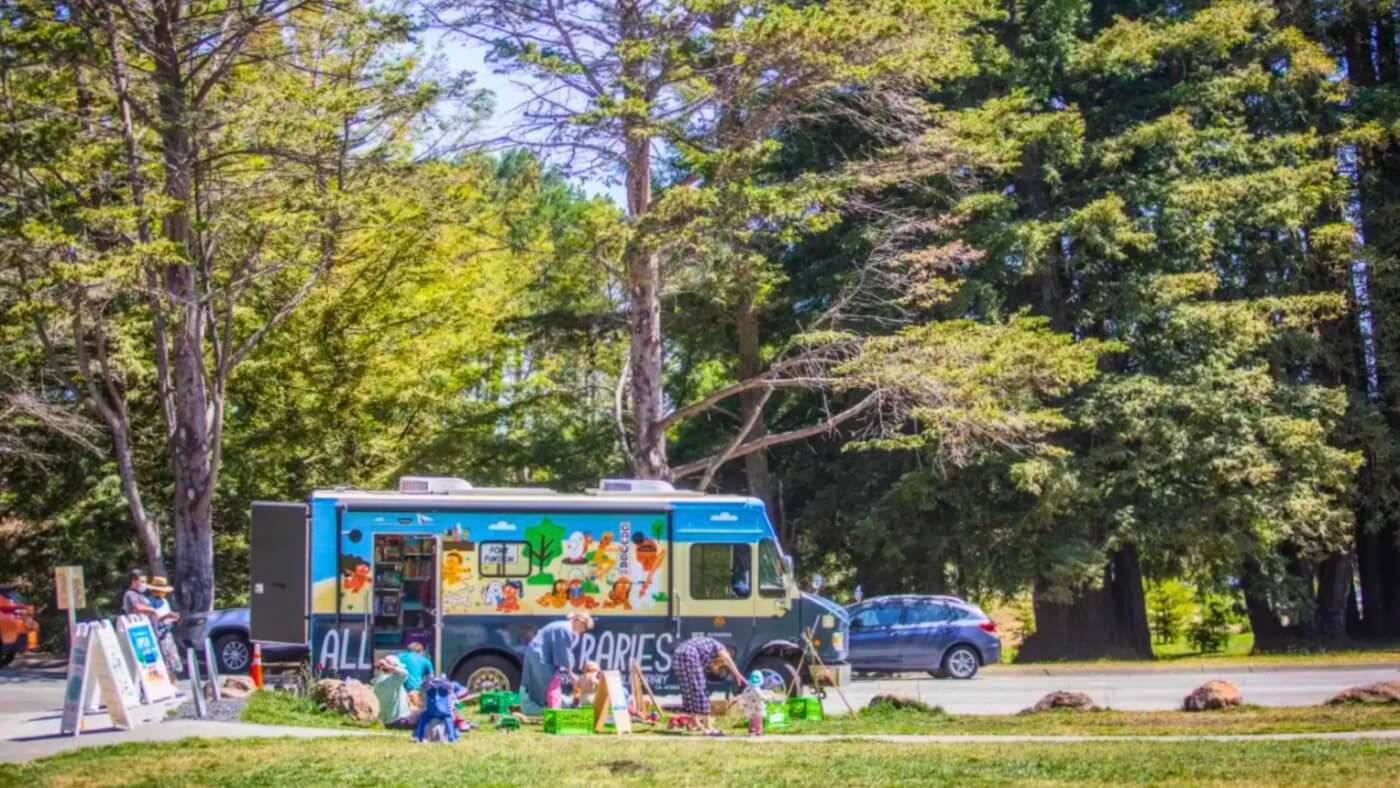 “We have very low populations of Brown and Black communities accessing our libraries and parks,” says Christy Estrovitz, Assistant Chief of Branches for San Francisco Public Library. To improve access to these resources, the library aims to reach people in their own communities by bringing the library to neighborhood parks through initiatives like their bookmobile.