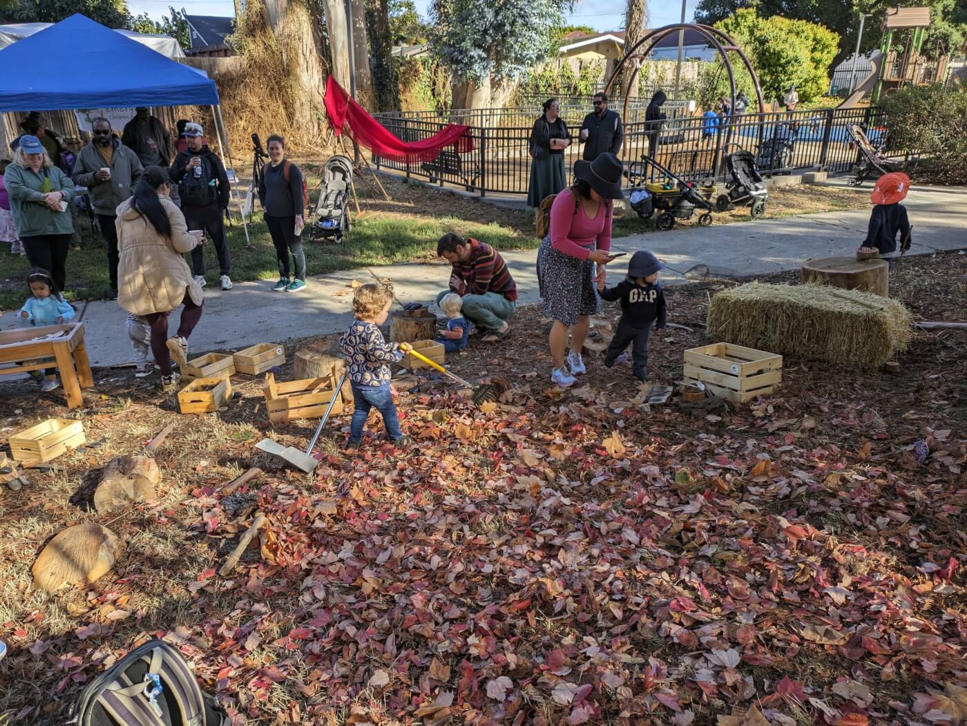 Emeryville Children & Nature, the City of Emeryville and Emery Unified School District joined Nature Everywhere Communities in 2024 to increase equitable access to nature and address climate resiliency through early childhood nature connection. In 2024, they held a Nature Pop-Up Series where they brought nature play elements to parks throughout the city for children 0 to 5 years old and their caregivers. Photo by Emeryville Children & Nature.