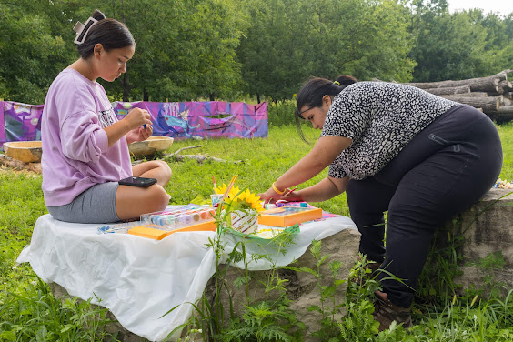 Two participants in Wakaŋ Tipi Awaŋyaŋkapi's Summer Indigenous Youth Program. Photo by Wolfie Browender, courtesy of Wakaŋ Tipi Awaŋyaŋkapi.