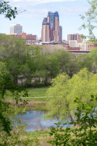 “People think of the ‘Land Back’ movement as the physical returning of land to Indigenous people,” Menomin explains, “but it can also look like returning stewardship and decision-making to Native people. We’re an Indigenous-led organization that’s spearheading this project. Even though the City of Saint Paul is a landowner, we’re the ones that are doing all the coordination…. and we’re making sure that we’re bringing the Indigenous community into different stages during the design process.”