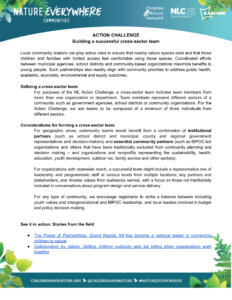 What is a cross-sector team and why is it important for the success of Nature Everywhere Communities initiative? This one-page resource defines a cross-sector team and looks at considerations for how to form a successful team. This resource is targeted to support Action Challenge communities.