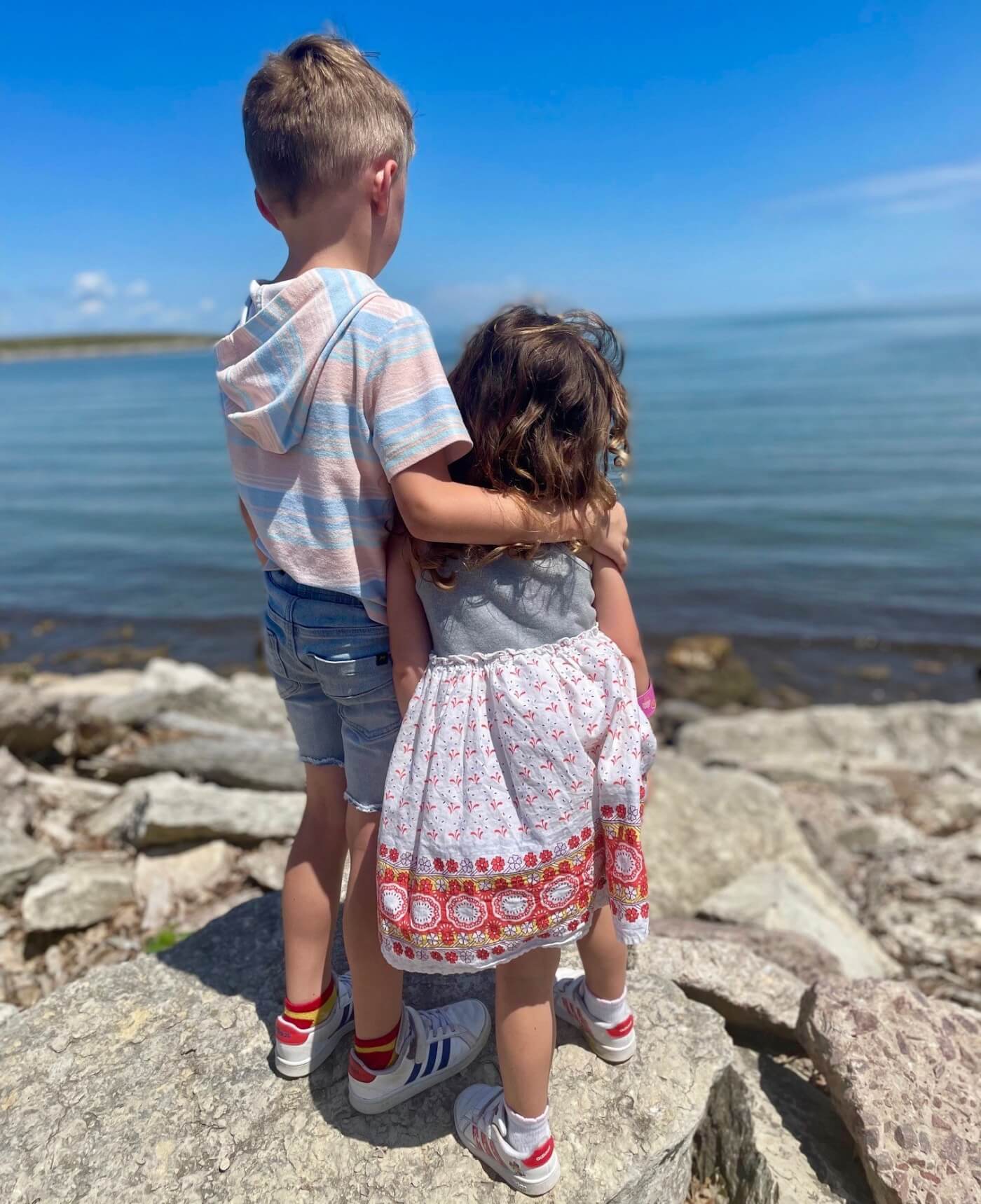 It really is true – water can be a powerful and calming thing! Almost nothing else could bring us a RARE (but beautiful) moment of peace like this for my oldest son (Sullivan, 6.5 years old) and daughter (Fiona, 4 years old)! Photo by Kerri Frake.