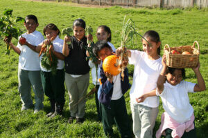 Students from PVUSD’s Hall District Elementary School show off some of the fall harvest bounty. Photo courtesy of Life Lab.