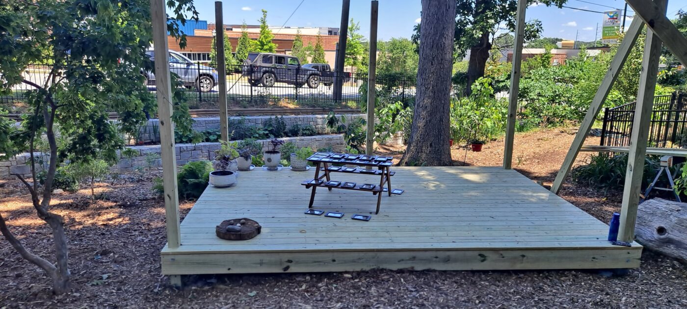 Have you wondered what an urban outdoor preschool program looks like? Check out this photo tour of SAND Preschool’s outdoor classrooms and community garden. SAND (The School At North Decatur UMC) is located 5 miles from downtown Atlanta in North Decatur, Georgia. The school has creatively turned a shared church/school campus into an urban oasis with native perennials, fruit-bearing trees and shrubs, and of course, vegetables galore! SAND is a 100% outdoor, half-day preschool. It is a wonderful place for children to “Learn, Be Loved and Play Outdoors!”