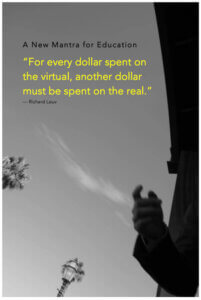 In fact, every legislator, school board member, college dean, parent and student should internalize a new mantra for education: For every dollar spent on the virtual, another dollar must be spent on the real — especially on learning environments immersed in the rest of nature, like Hirsh’s sea of sound and wonder.