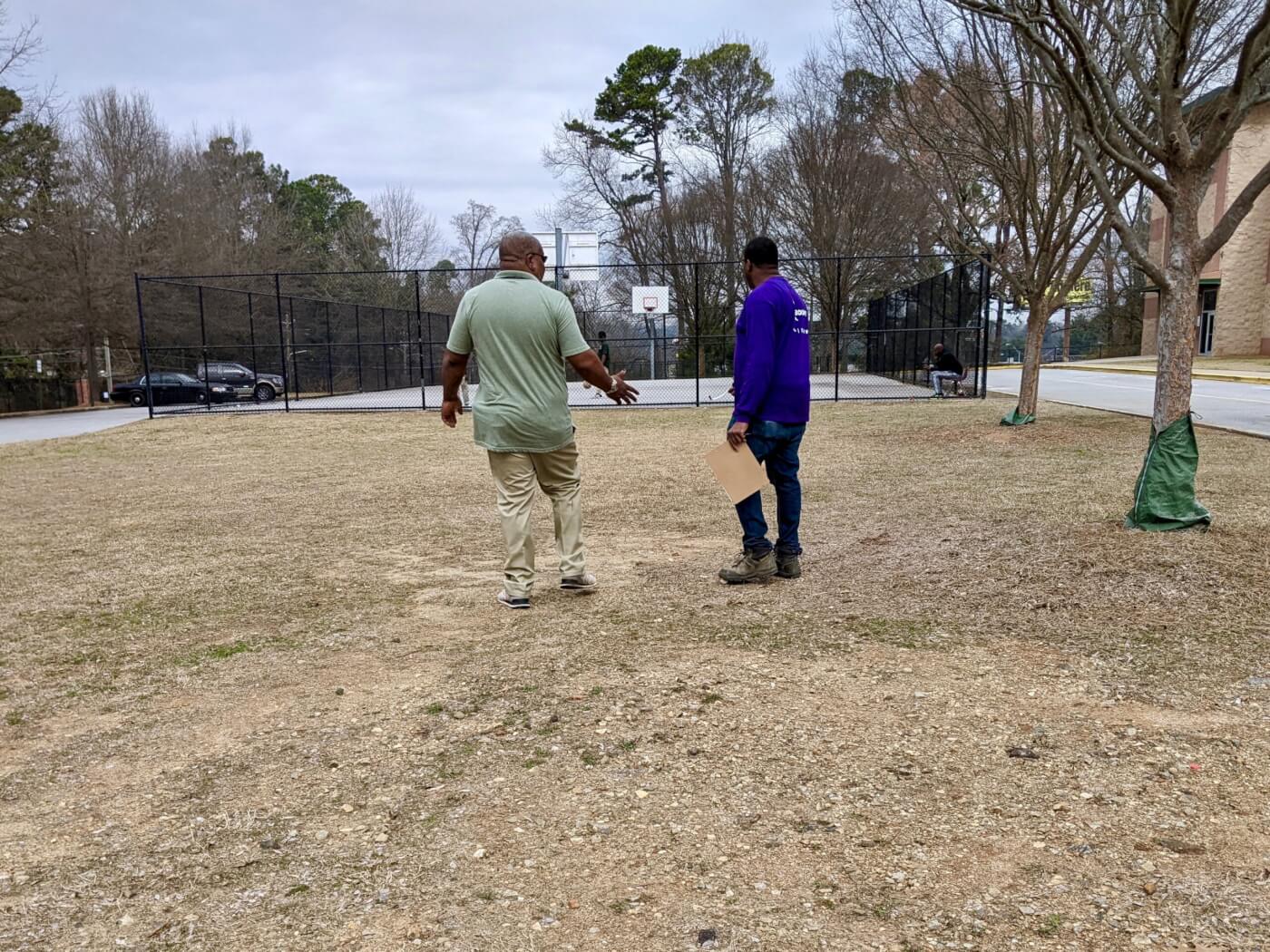 ACSP partners from APS and KABOOM! survey a schoolyard. Photo by Ruth Pimentel, Trust for Public Land