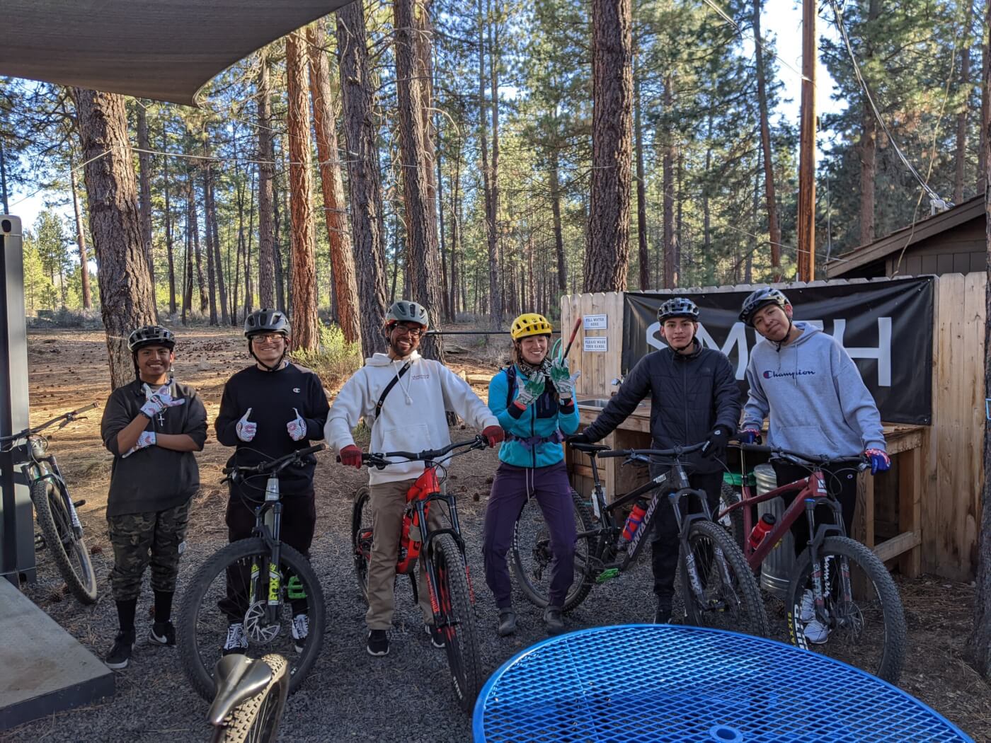 Vámonos Outside participants gather for a mountain biking adventure.Photo courtesy of Vámonos Outside.