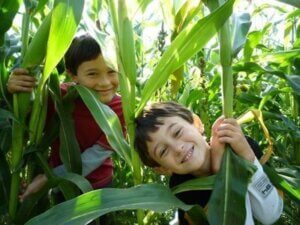Kids and corn. Photo courtesy of Robin Rivet.
